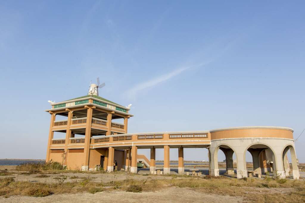 在通往黑面琵鷺保護區的廣闊魚塭之中,會見到一棟造型非常特殊的房屋,優雅的座落於水面上,這是台南第一座「水上屋」,也是臺南市重要的環境教育設施場所,更是七股黑面琵鷺保護區的重要據點