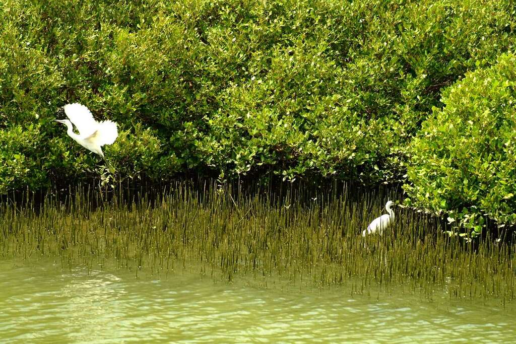 臺南市沿海河流攜帶了大量泥沙淤積,成就了紅樹林繁衍的好環境,此處樹種主要為海茄苳,由於紅樹林裡有非常豐富的魚、蝦、蟹、貝類生態系,所以集結了許多白鷺鷥、夜鷺等,每年冬季一到,更有黑面琵鷺到訪。