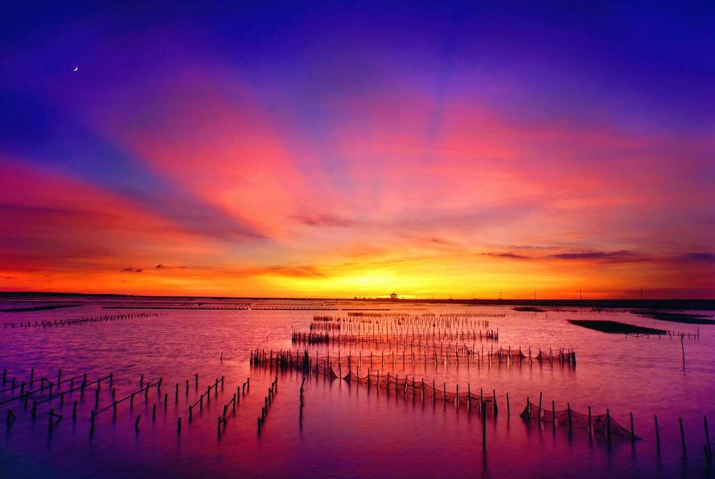 在台南的海邊,很多景色都是季節限定的珍貴大景,夏季午後雷陣雨後通常是最美最夢幻的時刻,觀海樓就是很多攝影人捕捉太陽餘暉不同色溫變化的好地方,天空清澈時,天空會有漸層色的變化,在日落的短短1小時裡,就會有很多很多的顏色變化,不管看幾次都不。